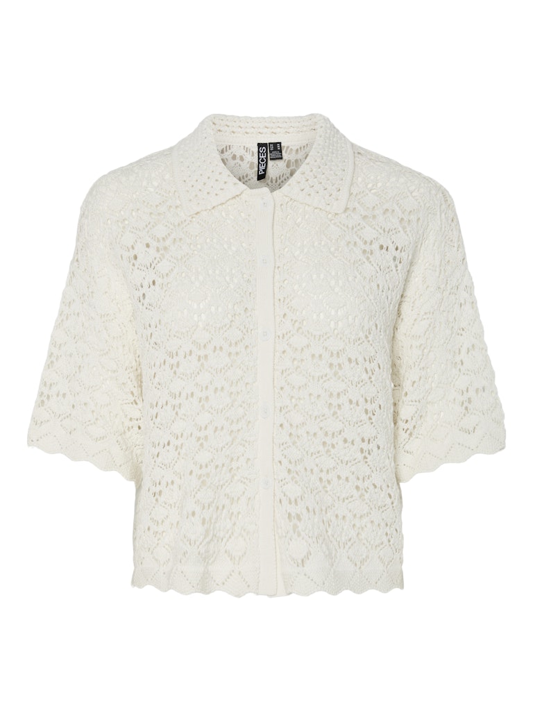 Cloud Dancer Tops - Pcfalka Ss Knit Shirt van Pieces