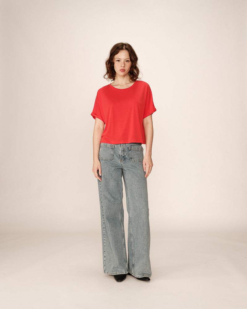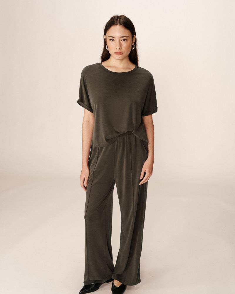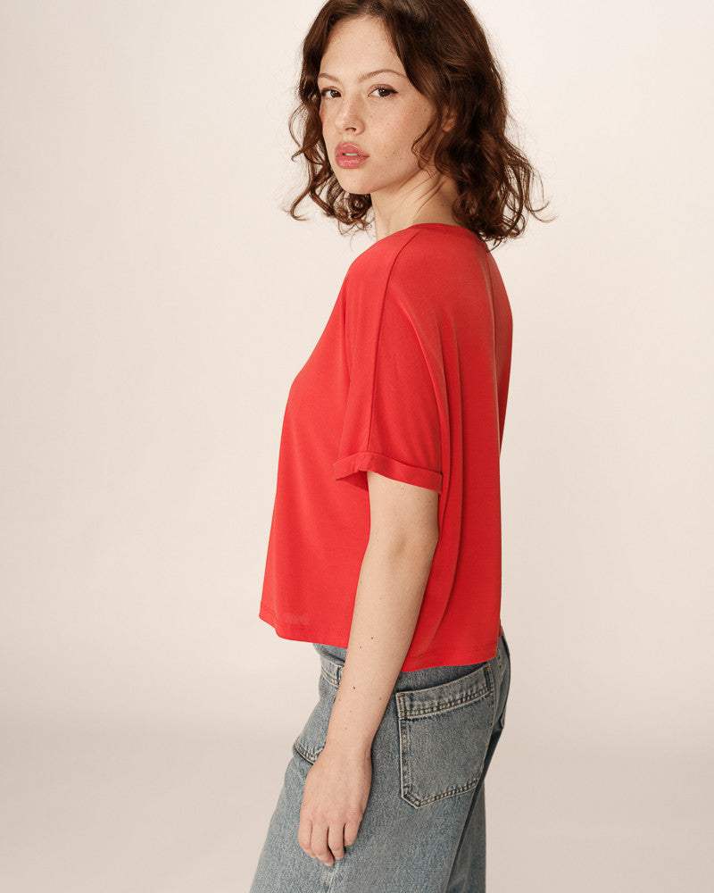 Style it with : The PARMA modal top is styled with the modal pieces PLEASE or PAX for a comfortable and casual outfit. The top is also styled with jeans like JUNE or JULES.