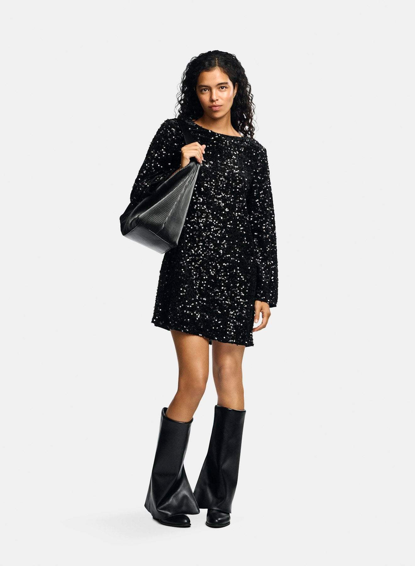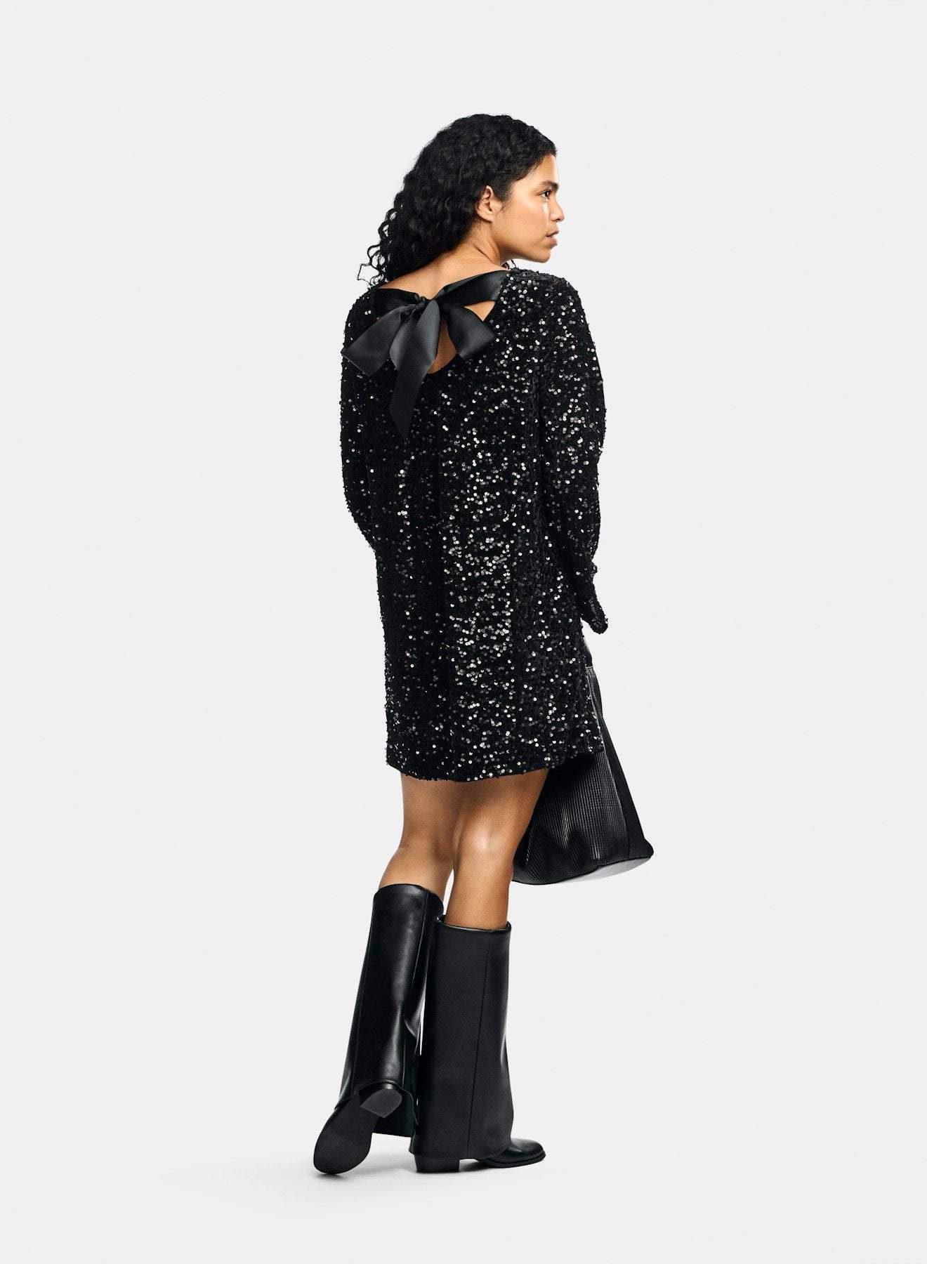 Black Black sequins Jurken - Pckam Ls Deep Back Bow Dress van Pieces