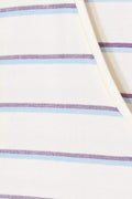 Wit T-shirt voor dames met korte mouwen, een V-hals en een blauwpaarse streepjesprint. Deze essential is een populaire must-have die je volgens jouw stijl kan combineren. Van een geklede broek tot een jeansbroek of rok: dit T-shirt kan je volgens jouw mood mixen en matchen.