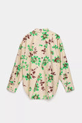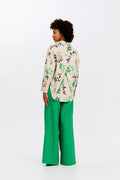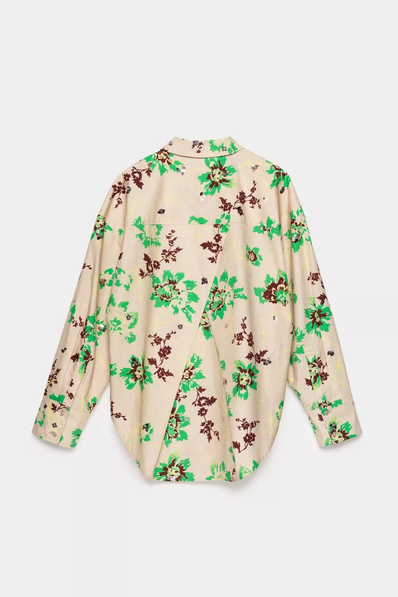 Krijg een instant crush op deze beige blouse met lange mouwen voor dames. Een in huis ontworpen bloemenprint wordt tot leven gebracht in bordeaux en groen in combinatie met pailletten. Naast een hemdkraag en borstzak, heeft deze hemdblouse een verrassende overslag op de rug. Gemaakt uit 100% katoen.