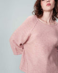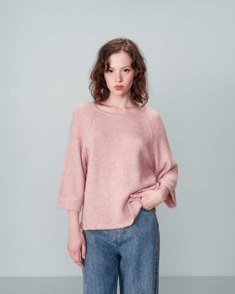 The NANOU loose sweater is a warm and comfortable piece made from yarn containing wool and mohair. The wide and square cut has been designed to integrate the everyday wardrobe. With these details like the round neckline and 3/4 sleeves, the NANOU wool sweater adds a féminine piece to the collection with an elegant and casual design.