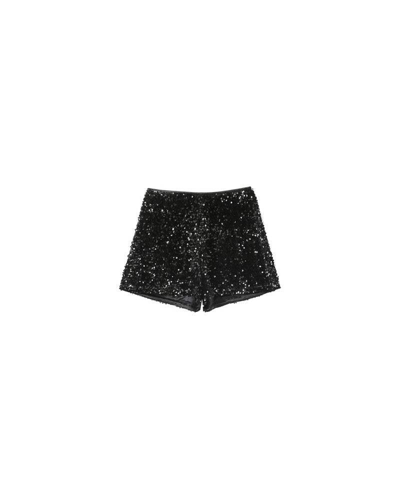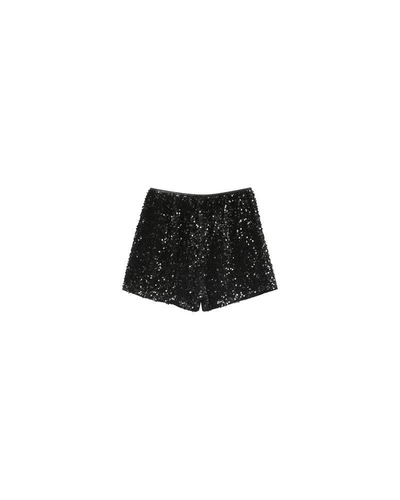 Complete the look : ORSO flared shorts are worn with the ORTALE cropped top, creating a total sequin look that shapes a festive and modern silhouette.