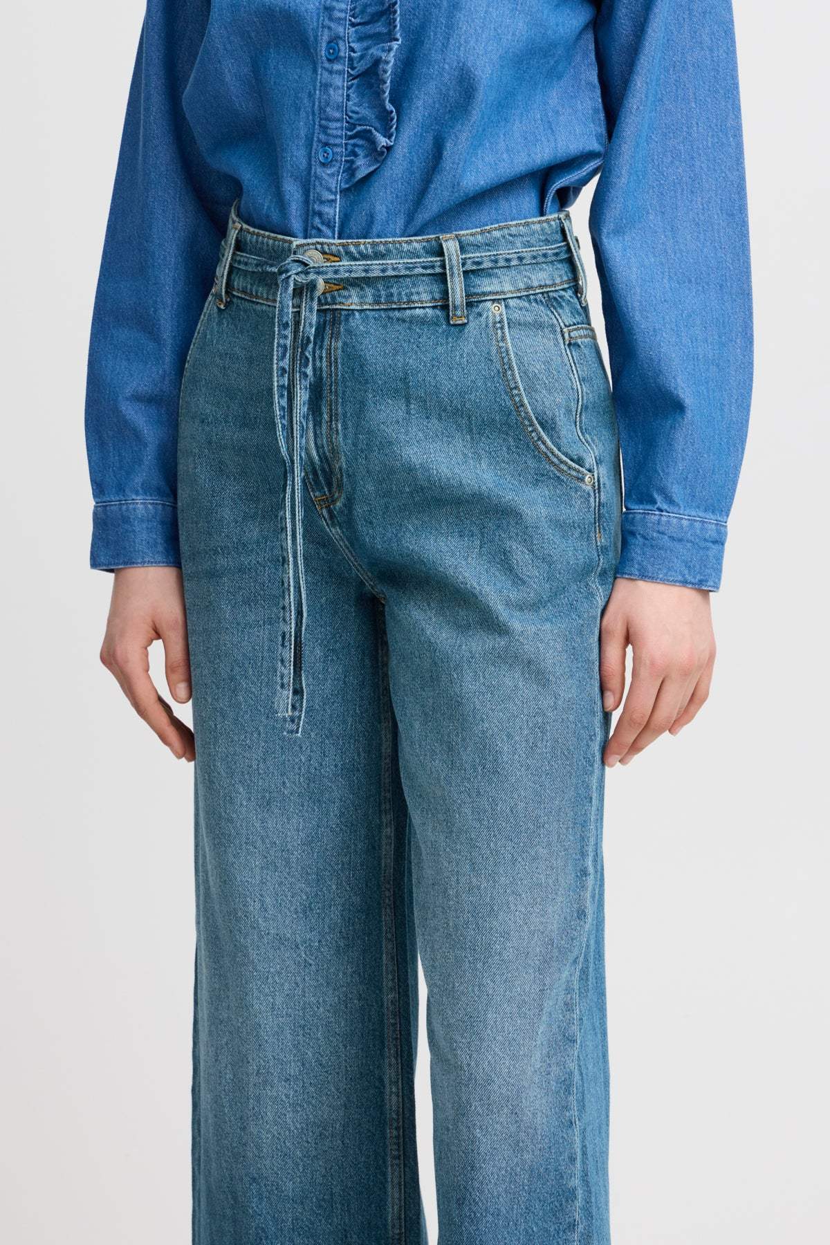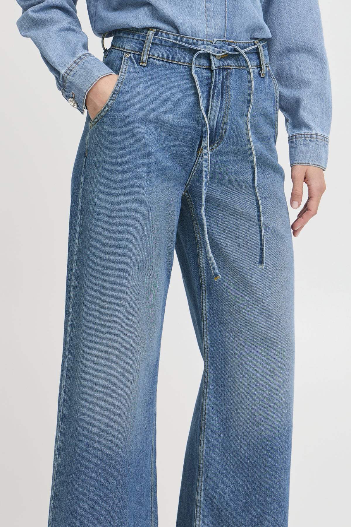 Mid Blue Denim Jeans - Bykimu Belt Jeans van b.young