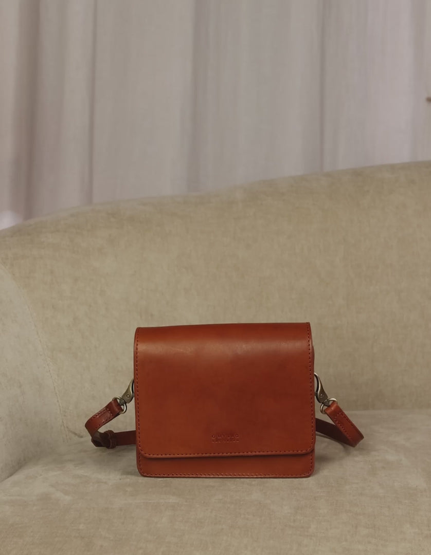 Classic Cognac Handtassen - AUDREY MINI bag Classic Cognac with 2 straps van O My Bag