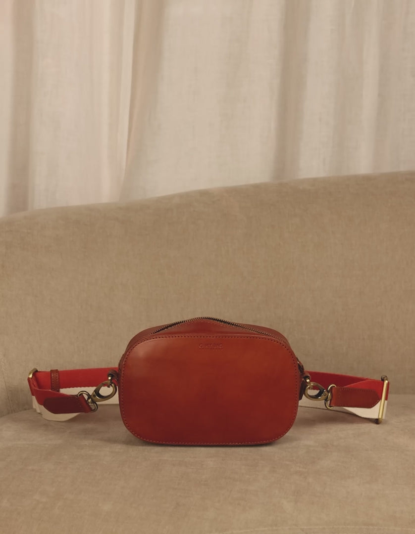 Onze kenmerkende gestreepte geweven band voegt een vleugje flair toe, en je kunt deze gemakkelijk wisselen met een extra band voor een frisse look. Compact maar ruim genoeg voor je telefoon, portemonnee, zonnebril en sleutels, Maya straalt moeiteloze stijl uit. In ons kenmerkende Cognac Klassieke Leer zullen de straten jouw catwalk zijn.