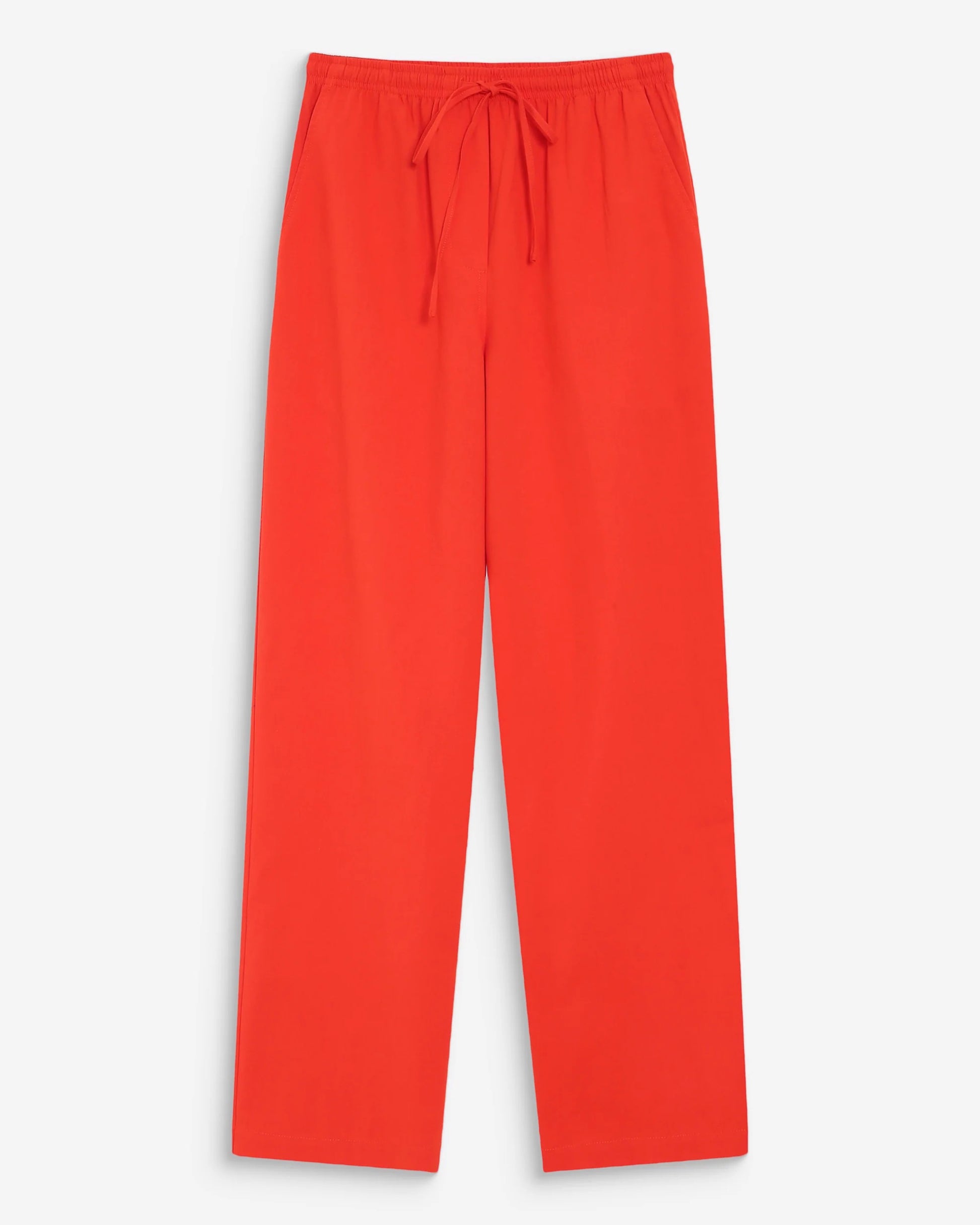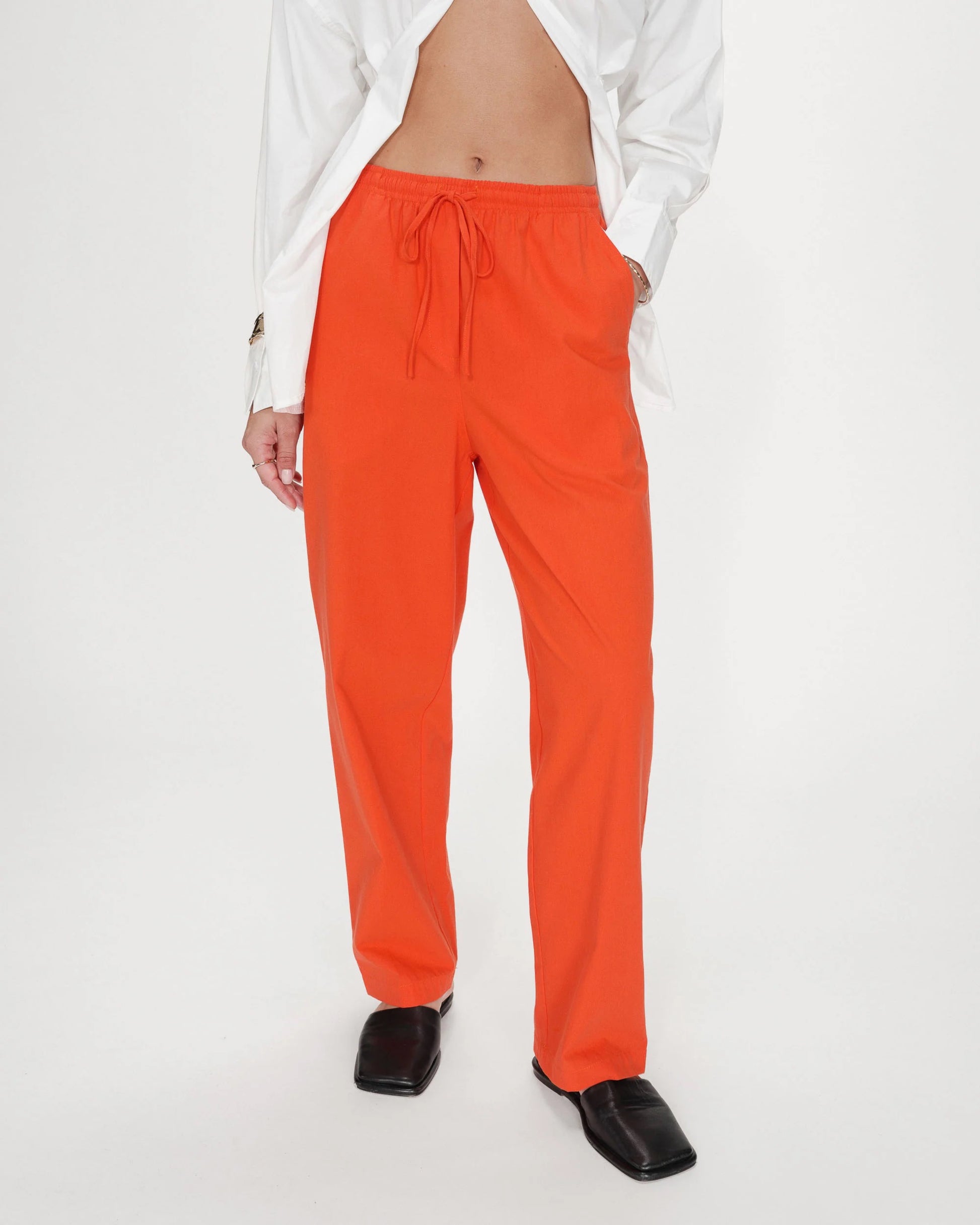 The straight cut and mid-rise waist of the RHODE cotton pants flatter the feminine curves and create a classic, timeless silhouette. The elastic waistband with drawstring ensures a comfortable, relaxed fit. The RHODE elastic-waist pants are made from 100% cotton and feature front slash pockets and back patch pockets.